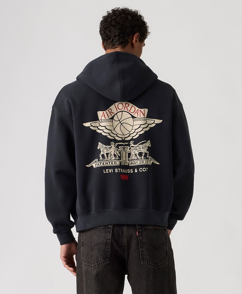Audacia y estilo inconfundible crearon esta colección en la que dos íconos, Michael Jordan y Levi's®, dan vida a prendas que son ya un clásico, ahora renovado con todo el simbolismo que ha cautivado a diversas subculturas. La historia ha dado un lugar imborrable a los dos símbolos que viven en la colección Levi's® X Jordan. Este buzo tiene capucha, cierre de doble dirección y es de corte regular con manga larga. Lo hicimos con el clásico logo del balón con las alas y nuestro Two Horses.