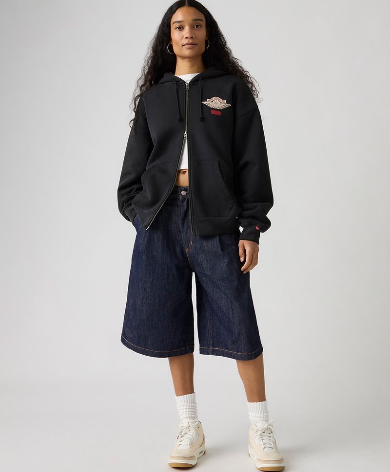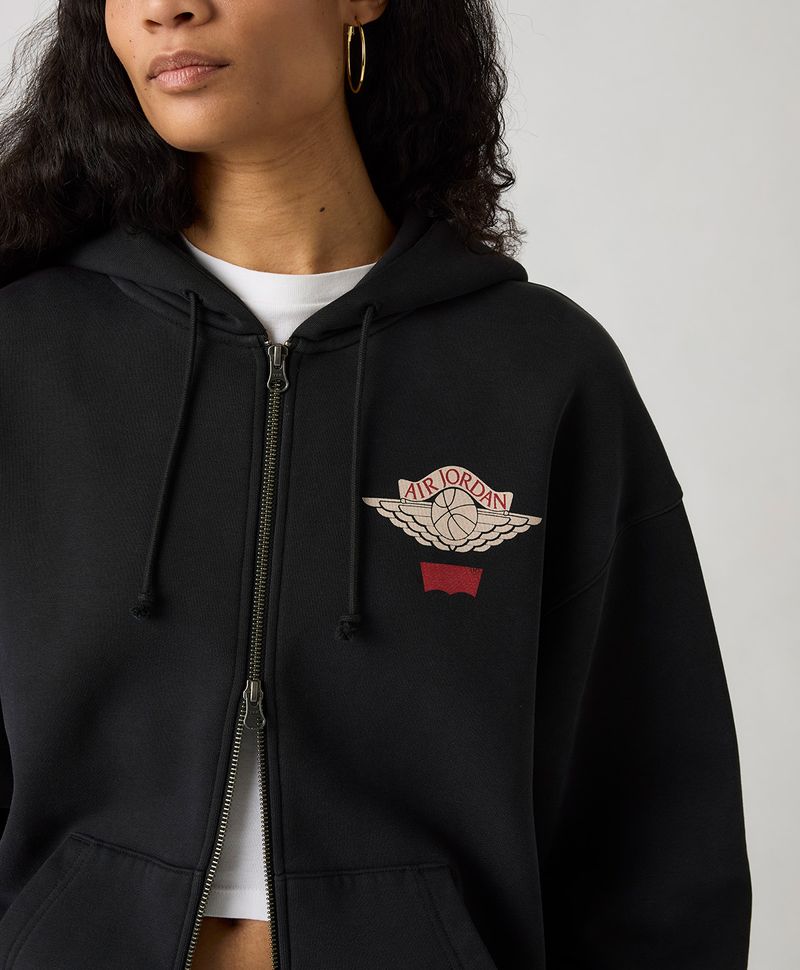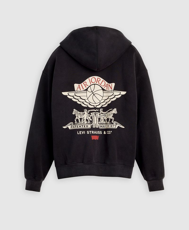 Audacia y estilo inconfundible crearon esta colección en la que dos íconos, Michael Jordan y Levi's®, dan vida a prendas que son ya un clásico, ahora renovado con todo el simbolismo que ha cautivado a diversas subculturas. La historia ha dado un lugar imborrable a los dos símbolos que viven en la colección Levi's® X Jordan. Este buzo tiene capucha, cierre de doble dirección y es de corte regular con manga larga. Lo hicimos con el clásico logo del balón con las alas y nuestro Two Horses.