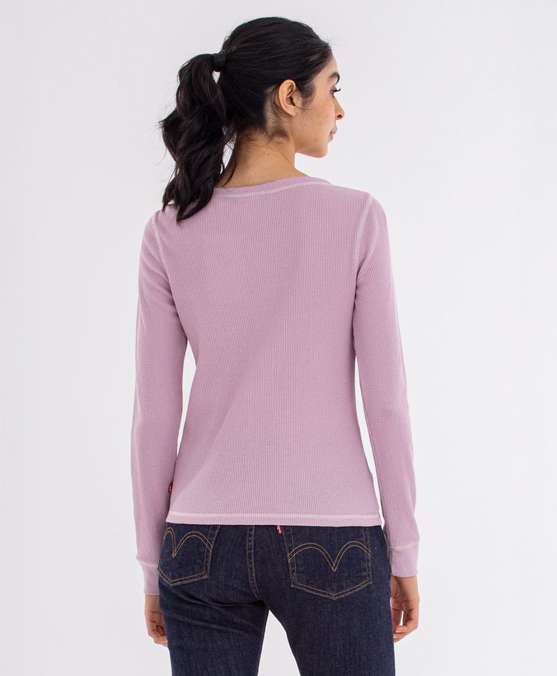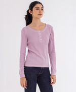 Camiseta henley que es ya un básico en todo guardarropa; su corte delgado y manga larga están creados para resaltar tu figura; Su clásico cuello es perfecto para que puedas lucir tus accesorios favoritos.