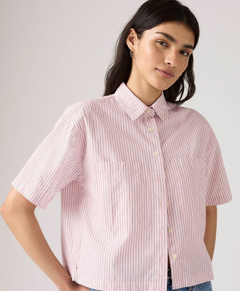 Ajuste y Tamaño Corte regular. Manga corta. Cuello camisero. Bolsillos frontales.
