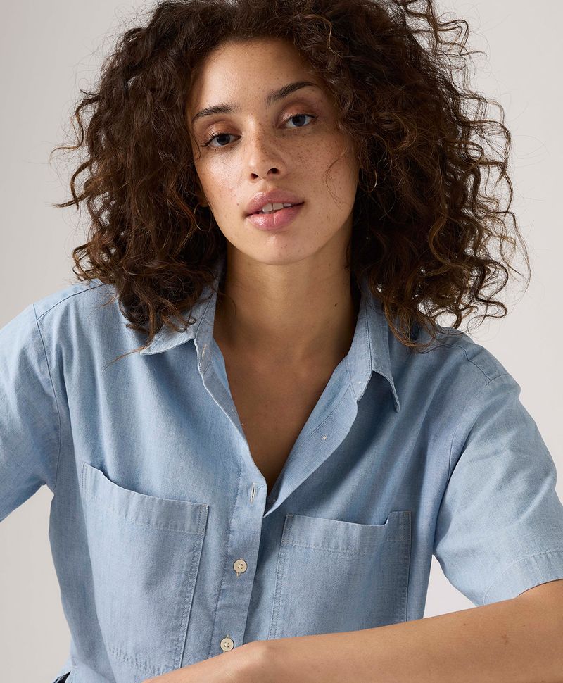 La Camisa Manga Corta Harlie Levi’s® combina frescura y estilo con una silueta corta tipo crop que aporta un toque moderno y relajado. Con corte relajado, manga corta, cuello camisero y botonadura completa, ofrece un look casual lleno de personalidad. Confeccionada en chambray, incluye dobles bolsillos utilitarios que refuerzan su estética libre y funcional. Perfecta para combinar con jeans de cintura alta, shorts o faldas para un outfit versátil y auténticamente Levi’s®.