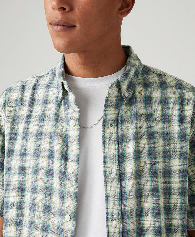 Una camisa atemporal perfecta para crear el look que más te guste, ya sea casual o de tendencia urbana. Su corte es relajado con manga corta y cuello camisero, al frente lleva práctica botonadura completa.