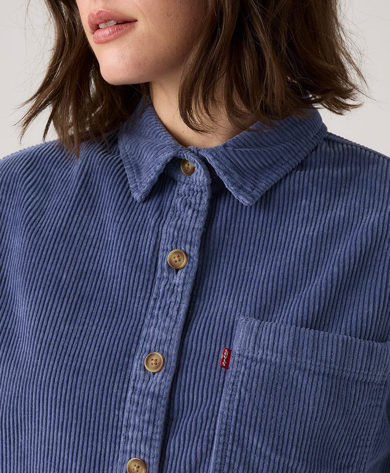 Ajuste y Tamaño Corte regular. Cuello camisero. Bolsillo frontal. Manga larga.