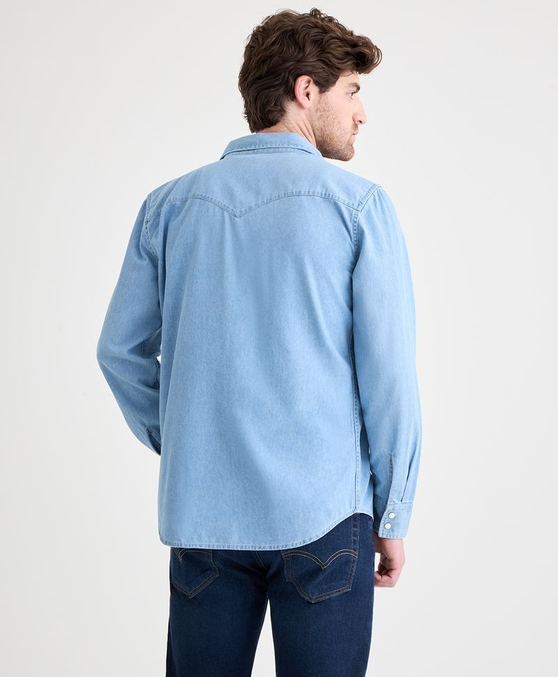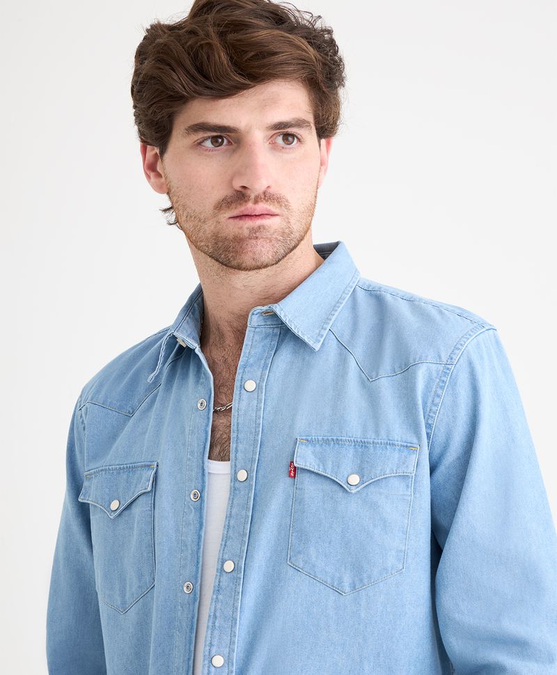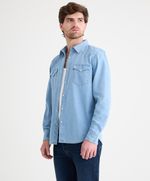 Ajuste y Tamaño Comodidad y diseño en una sola prenda. Corte regular. Manga larga. Cuello camisero. Con bolsillos en el pecho. Denim. Con Broches de Presión.