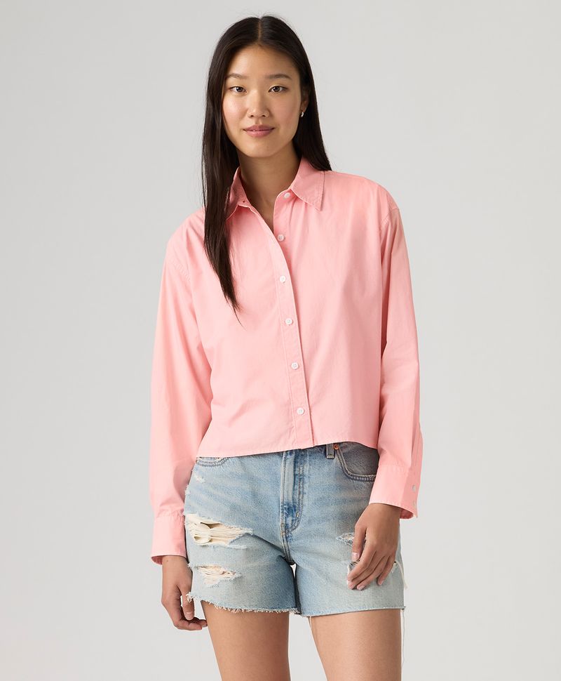 Ajuste y Tamaño Frescura y estilo para disfrutar. Corte relajado. Crop. Manga larga. Cuello camisero. Popelina. Abotonado de cuello a ruedo.