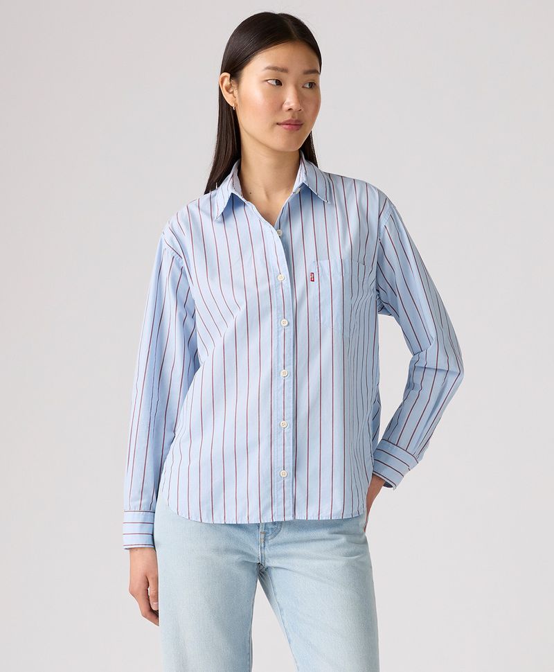 Esta camisa es un básico del estilo fresco de toques western. Tiene corte relajado para darte una increíble sensación de libertad a lo largo del día, manga larga, cuello camisero y botonadura completa al frente.