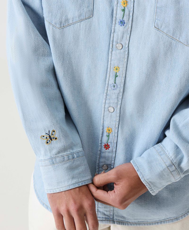 Ajuste y Tamaño Corte relajado tipo overshirt. Manga larga y diseño clásico western. Cuello camisero en punta. Bolsillos con solapa en el pecho. Confeccionada en 100% algodón. Cierre frontal con botones tradicionales.