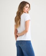 Esta camiseta es un básico por definición; ideal para todo tipo de cuerpo, un diseño que va a la perfección con jeans, faldas o pantalones, clásico de los guardarropas en toda regla. Su corte es regular con manga corta y cuello redondo. Será un lienzo para mostrar tu personalidad sin importar la época del año.