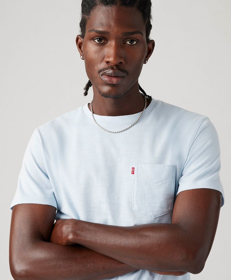 Ajuste y Tamaño Corte regular. Manga corta. Cuello redondo. Bolsillo frontal.