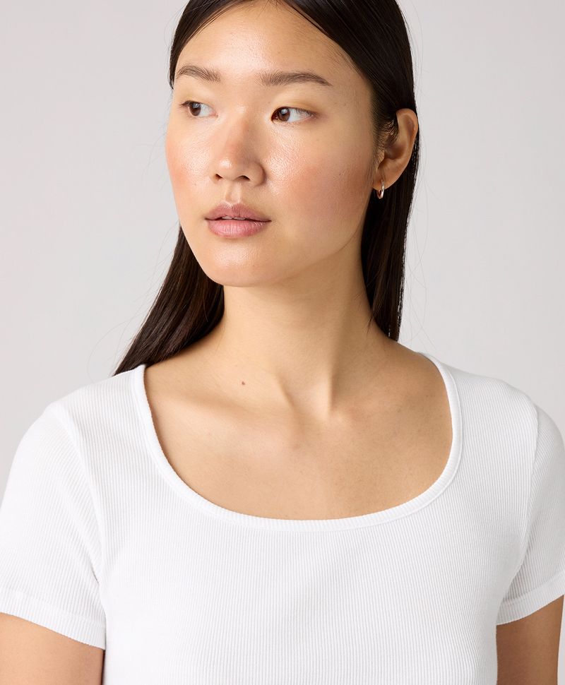 Ajuste y Tamaño Combínala con tus jeans de cintura alta. Corte regular. Cuello cuadrado. Manga corta. Ligeramente recortada en la parte baja. Sólido.