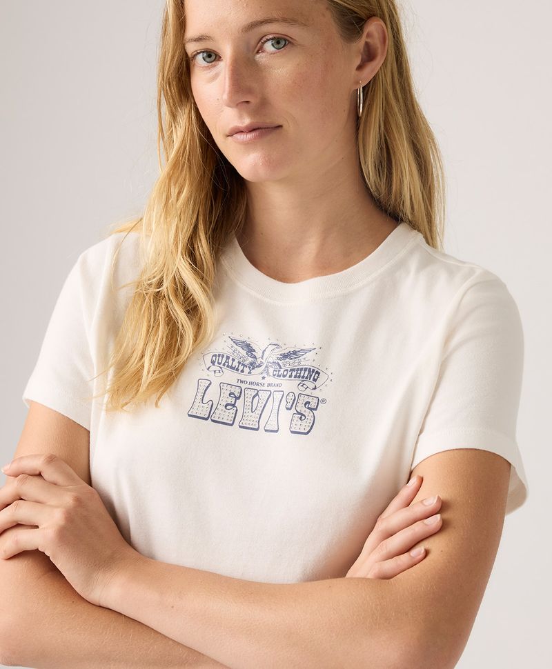 La camiseta para mujer Levi’s® Gr Favorite Tee se convertirá en tu prenda predilecta. Diseñada con un fit regular que favorece a todas las siluetas, esta camiseta de manga corta y cuello redondo está confeccionada en punto de algodón 100% para una suavidad y comodidad inigualables. Su diseño y el sutil logo en el pecho la convierten en una pieza versátil y atemporal. Fiel al estilo auténtico de Levi’s®, esta camiseta es perfecta para combinar con tus jeans favoritos, creando un look casual y relajado para cualquier ocasión. Una prenda esencial que refleja calidad y estilo, ideal para expresar tu individualidad día tras día.