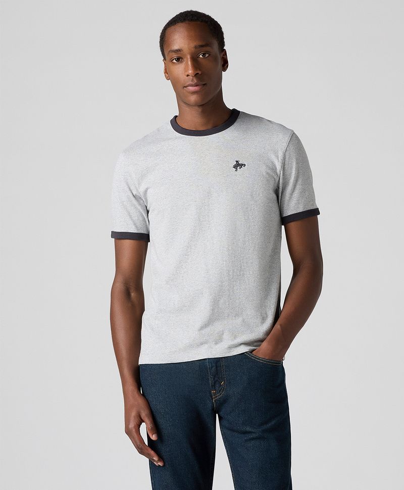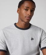 Es una camiseta con un diseño vintage que combina detalles clásicos y un estilo muy reconocible. Tiene un detalle bordado y ribetes en cuello y mangas.
