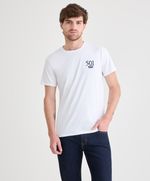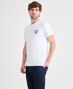 Ajuste y Tamaño Corte Regular. Jersey. Lisa. Cuello Redondo. Manga Corta. Con gráfico pequeño en pecho.