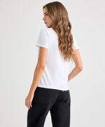 Esta camiseta es un básico a partir del que podrás crear el look que te hará resaltar. Tiene manga corta, cuello redondo y corte regular, no existe mejor opción para combinar tus jeans favoritos y lucir perfecta.