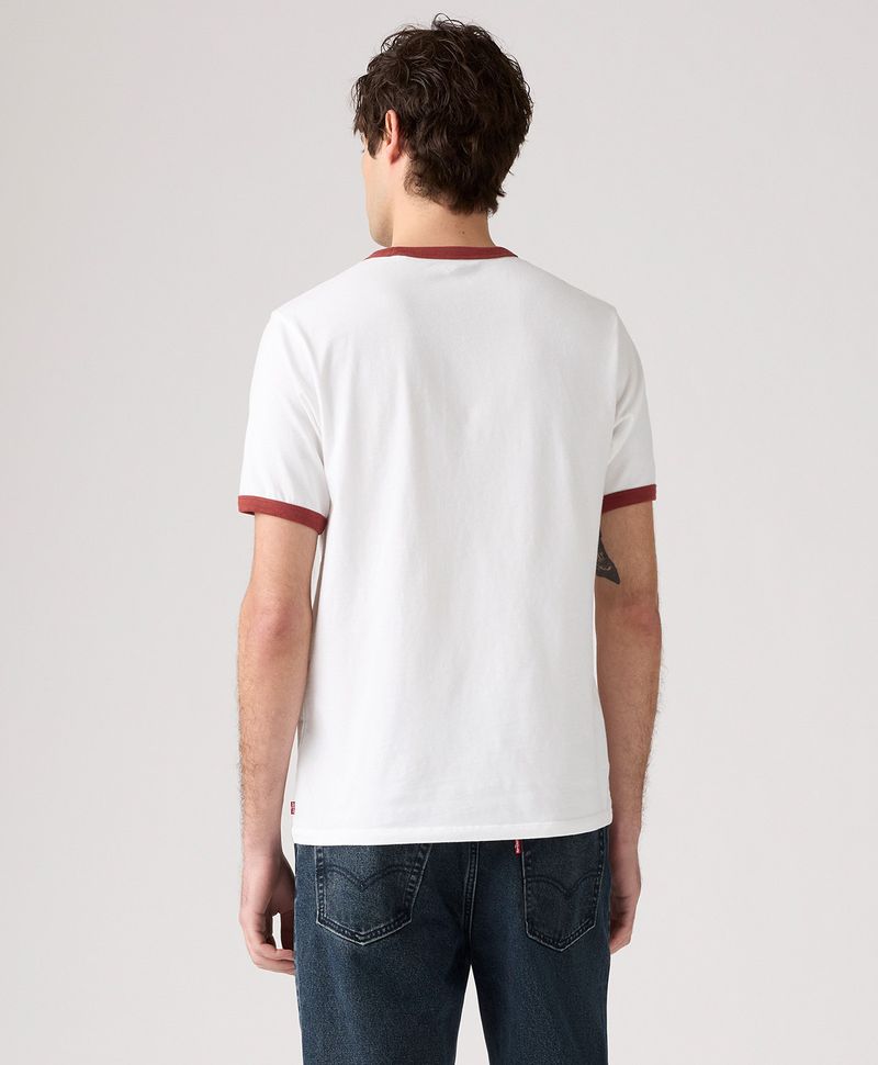 Es una camiseta básica y cómoda con detalles clásicos en el diseño y gráficos, con mangas cortas, ideal para climas cálidos o para uso casual, y con ribetes en el cuello y mangas.