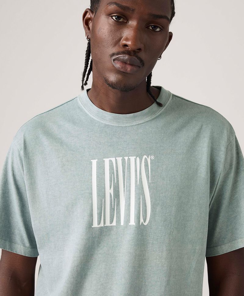 Esta pieza tiene un estilo retro, un corte clásico y un diseño gráfico que resalta la identidad de la marca, con mangas cortas, ideal para clima cálido o uso casual, y un fit vintage inspirado en estilos clásicos o antiguos, generalmente un poco más recto y cómodo, con un aire retro.