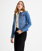 Ajuste y Tamaño Corte regular. Cuello camisero. Forro interno y cuello en sherpa. Estilo trucker.