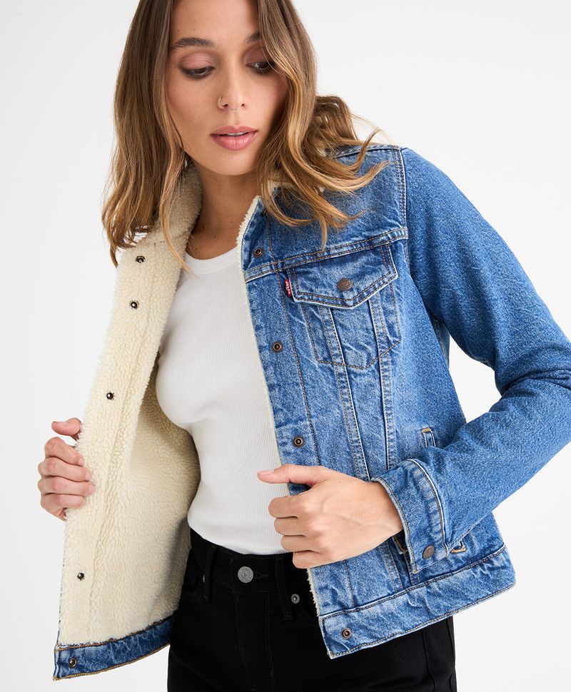 Chaqueta de denim con forro y cuello de sherpa. Hechas para recorrer la distancia. durante décadas, nuestras sherpa han sido usadas ??y amadas por casi todos. con una silueta versátil y una longitud perfecta, la original sherpa trucker se convertirá en tu nueva trucker favorita. pontela sobre cualquier atuendo para un look atemporal.