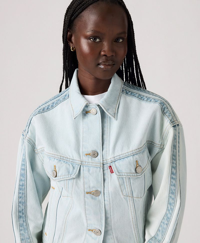 Esta chaqueta conjuga lo mejor de una trucker con toques de diseño moderno. Su corte es regular con manga larga, cuello camisero y tiene botonadura completa al frente. Está hecho con algodón reciclado para que tengas una prenda responsable con el planeta.