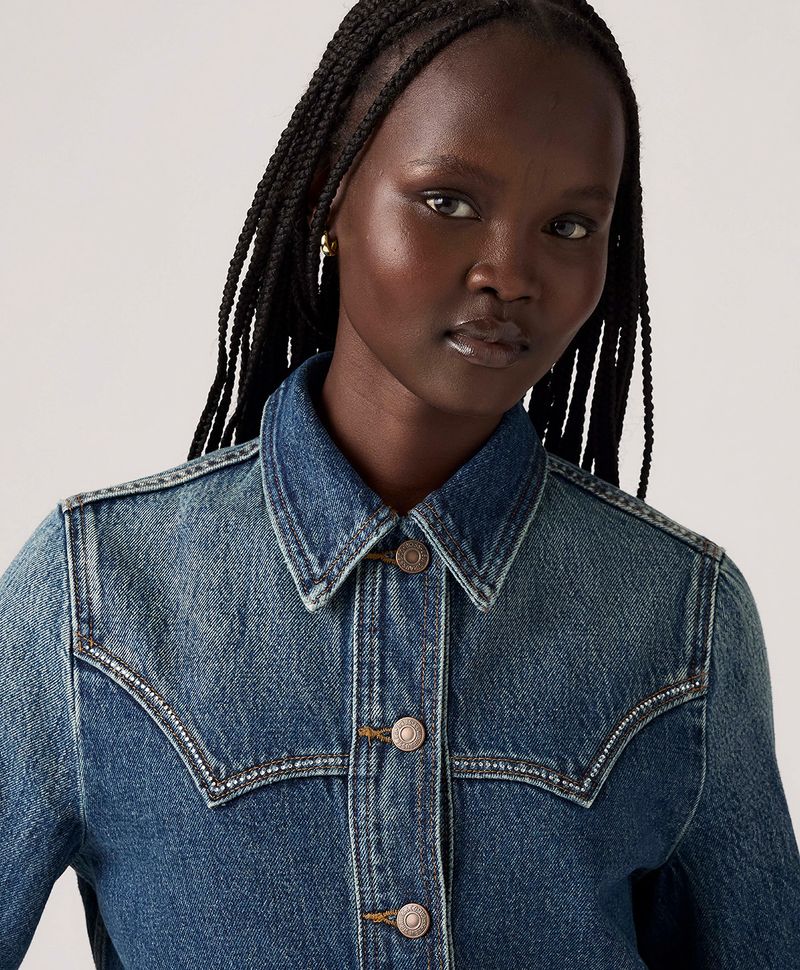 Ajuste y Tamaño Corte regular. Detalles estilo vaquero. Estilo trucker.