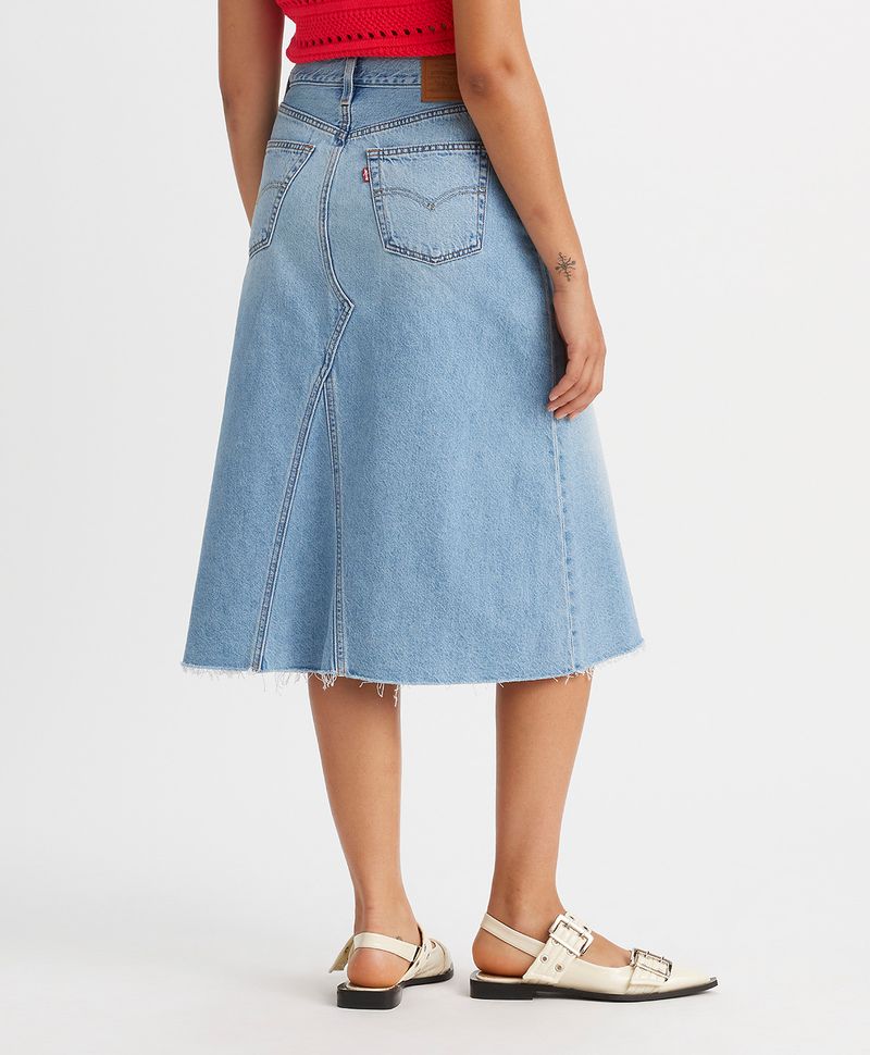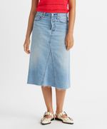 Esta falda de estilo western en forma de "A" te hará sentir cómoda y con un atuendo atemporal. Tiene corte regular, cintura media y largo que llega por debajo de la rodilla. Ideal para combinar con una camiseta básica o una blusa delicada, esta falda se adapta a tus días más creativos y a tus noches más inspiradas.