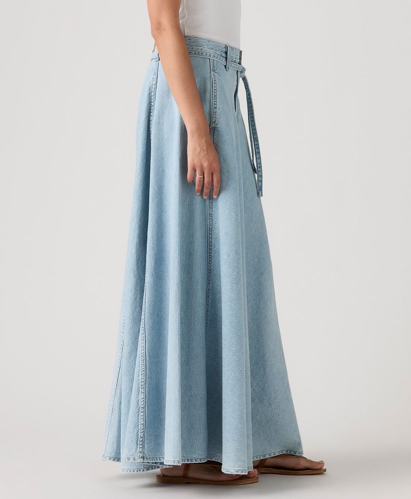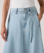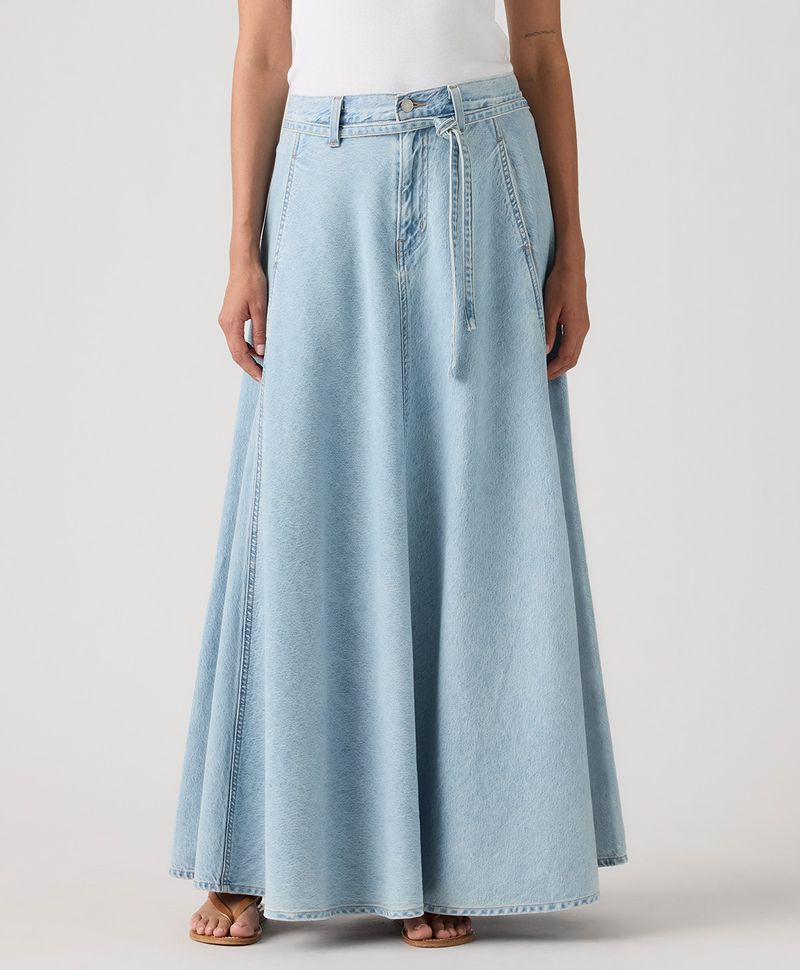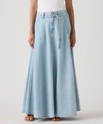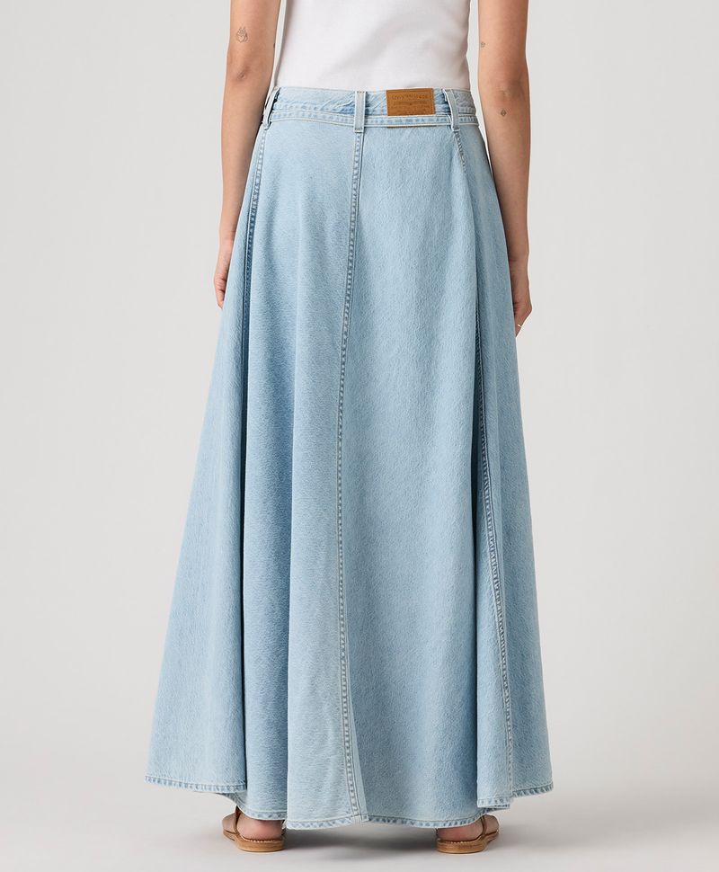 Ajuste y Tamaño Una falda oversize fácil de llevar. Regular. De mezclilla. Lavado claro. Cintura media. Largo Maxi. Denim. Cierre en cremallera.