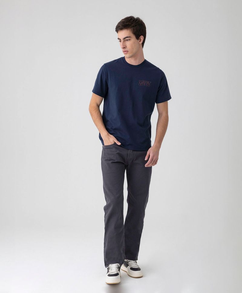 Ajuste y Tamaño Regular en cadera y muslo, ni ajustado ni amplio. Pierna recta en todo el largo, desde la rodilla hasta el tobillo. Tiro medio, justo sobre la cadera. Estilo atemporal, limpio y versátil. Lavado oscuro, gris.