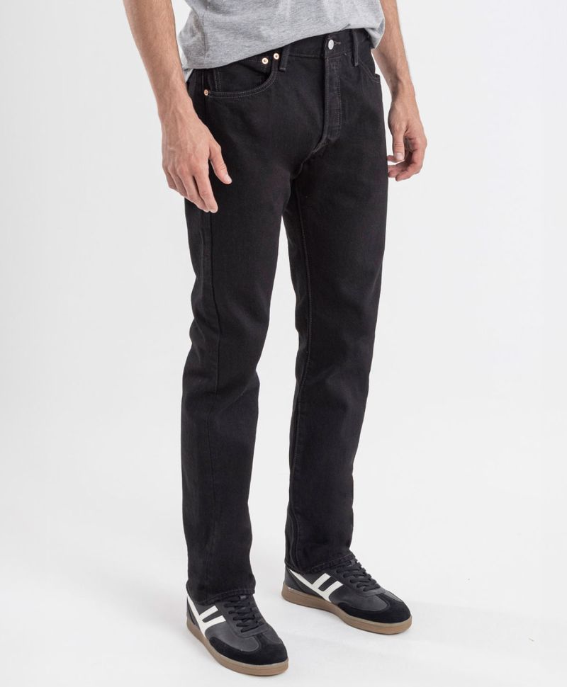 Ajuste y Tamaño Regular en cadera y muslo, ni ajustado ni amplio. Pierna recta en todo el largo, desde la rodilla hasta el tobillo. Tiro medio, justo sobre la cadera. Estilo atemporal, limpio y versátil. Lavado oscuro, negro.