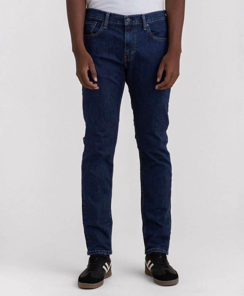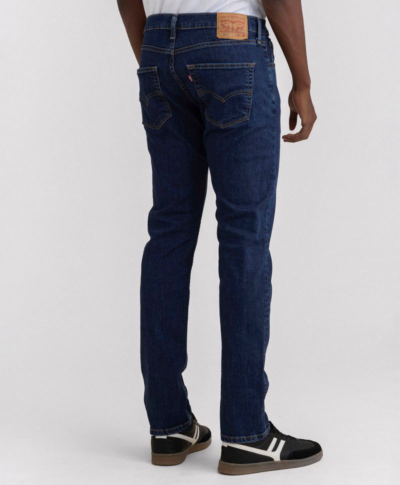 Ajuste y Tamaño Entallado desde la cadera hasta la rodilla. Pierna recta, más estrecha que el straight, más relajada que el skinny. Tiro medio, justo sobre la cadera. Estilo pulido, versátil, moderno. Lavado oscuro.