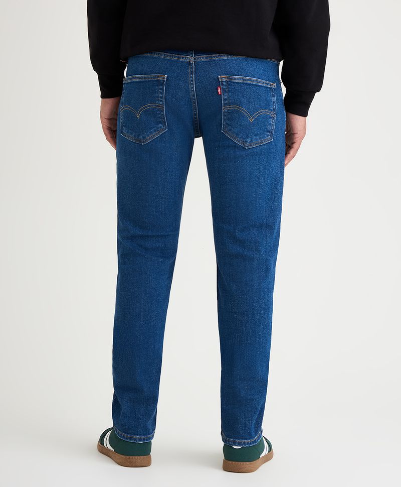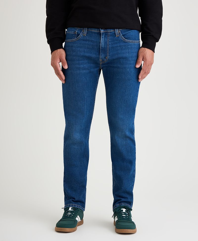 Ajuste y Tamaño Entallado desde la cadera hasta la rodilla. Pierna recta, más estrecha que el straight, más relajada que el skinny. Tiro medio, justo sobre la cadera. Estilo pulido, versátil, moderno. Lavado medio.