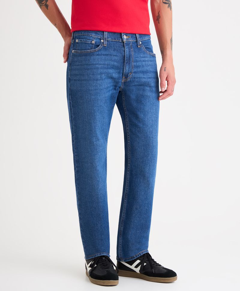 Ajuste y Tamaño Regular en cadera y muslo, ni ajustado ni amplio. Pierna recta en todo el largo, desde la rodilla hasta el tobillo. Tiro medio, justo sobre la cadera. Estilo atemporal, limpio y versátil. Lavado medio.