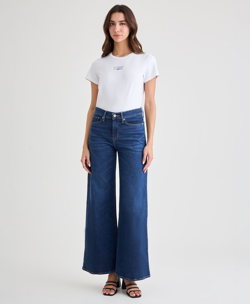 Jeans ajustados en cintura, con corte recto y bota amplia desde la cadera, de tiro medio, con tela elástica y diseño pensado para moldear la figura y ofrecer comodidad todo el día debido a su pretina interior. Ideal para looks formales o chic con blusas, chaquetas cortas o zapatos altos. También se adapta a estilos boho o retro dependiendo del styling.