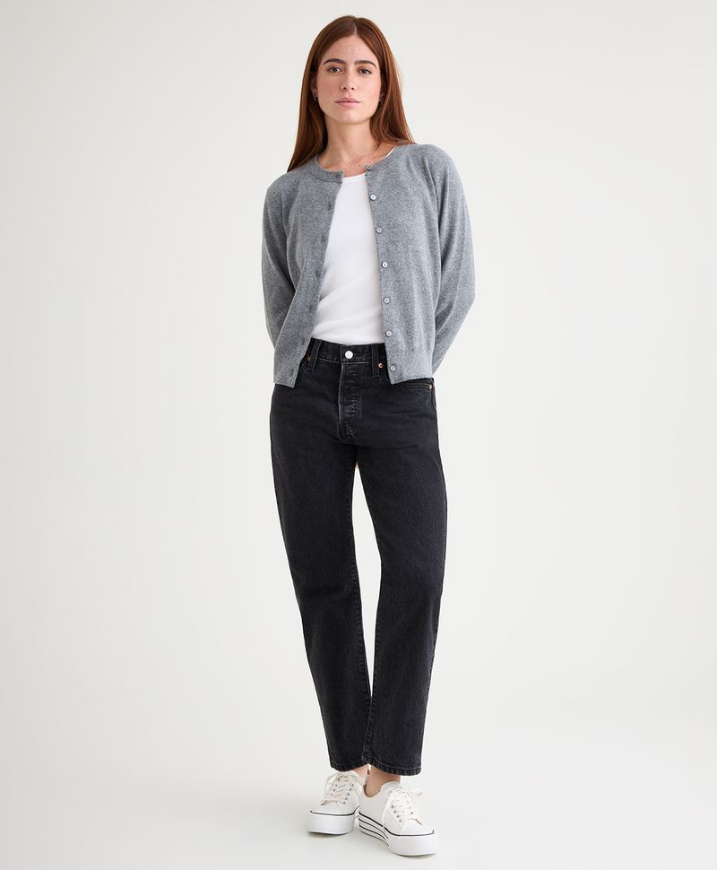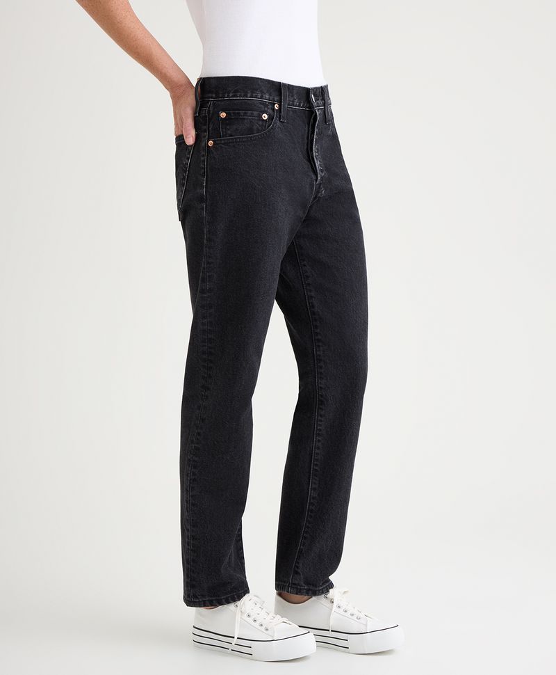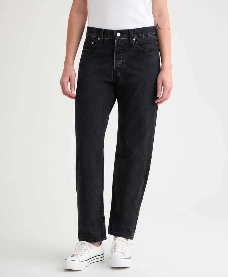 Estos jeans son una versión moderna de nuestros clásicos 501®, tienen el ya conocido corte regular con cintura media, pero con una pierna ligeramente recortada que deja al descubierto el tobillo.
