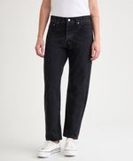 Ajuste y Tamaño Corte regular. Tiro medio. Pierna recta. Bota corta, encima del tobillo. Lavado oscuro, negro.