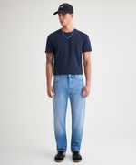 Ajuste y Tamaño Regular en cadera y muslo, ni ajustado ni amplio. Pierna recta en todo el largo, desde la rodilla hasta el tobillo. Tiro medio, justo sobre la cadera. Estilo atemporal, limpio y versátil. Lavado oscuro.