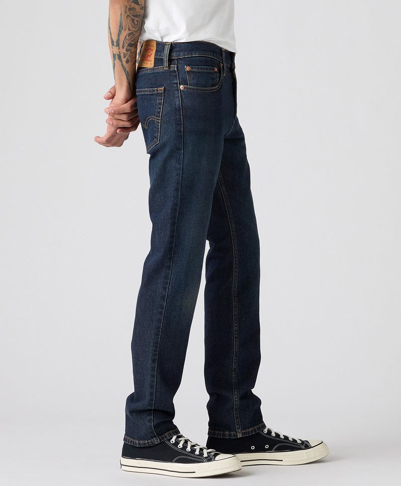 Ajuste y Tamaño Entallado desde la cadera hasta la rodilla. Pierna recta, más estrecha que el straight, más relajada que el skinny. Tiro medio, justo sobre la cadera. Estilo pulido, versátil, moderno. Lavado oscuro.