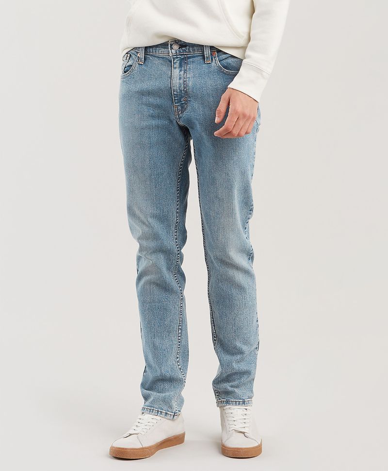 Ajuste y Tamaño Entallado desde la cadera hasta la rodilla. Pierna recta, más estrecha que el straight, más relajada que el skinny. Tiro medio, justo sobre la cadera. Estilo pulido, versátil, moderno. Lavado claro.