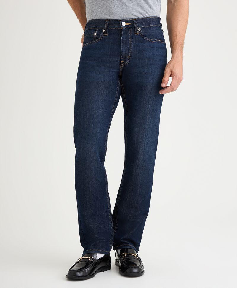Ajuste y Tamaño Regular en cadera y muslo, ni ajustado ni amplio. Pierna recta en todo el largo, desde la rodilla hasta el tobillo. Tiro medio, justo sobre la cadera. Estilo atemporal, limpio y versátil. Lavado oscuro.