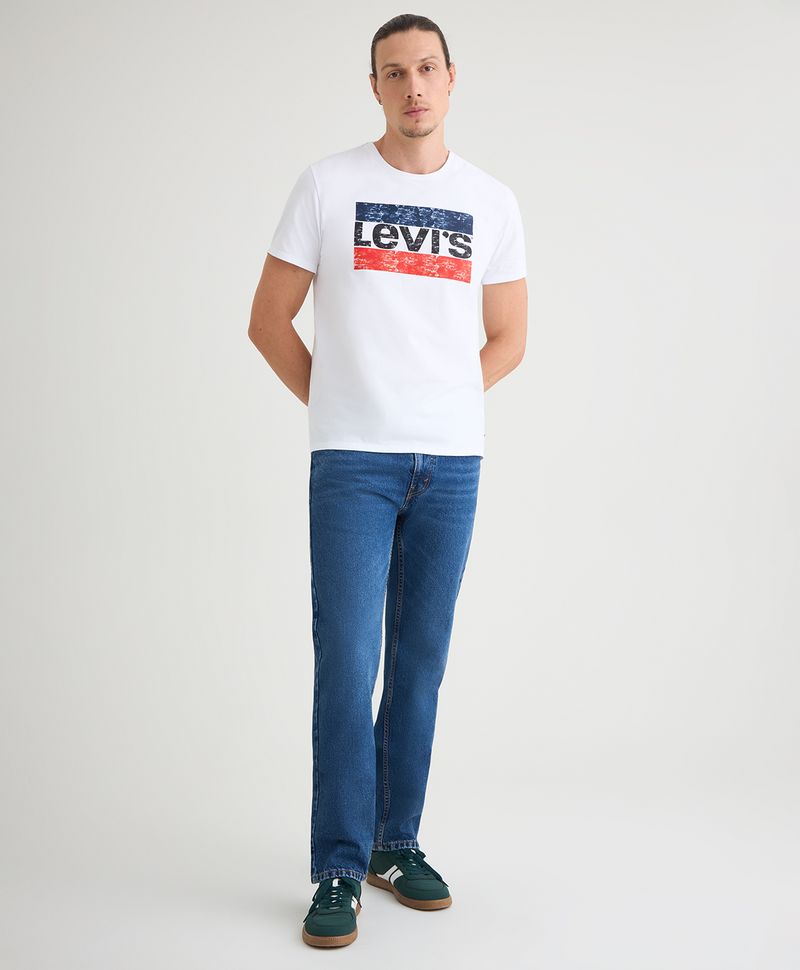 Ajuste y Tamaño Regular en cadera y muslo, ni ajustado ni amplio. Pierna recta en todo el largo, desde la rodilla hasta el tobillo. Tiro medio, justo sobre la cadera. Estilo atemporal, limpio y versátil. Lavado medio.