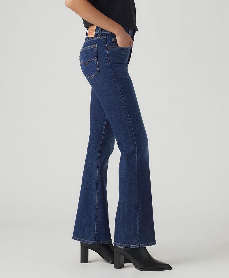 Ajuste y Tamaño Entallado en cadera y muslo. Pierna ligeramente amplia desde la rodilla. Tiro alto, encima del ombligo. Estilo cásico, versátil, con un toque vintage o western según el look. Lavado oscuro.