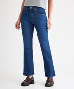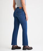 Jeans con corte slim, tiro alto y pierna ligeramente amplia en la parte baja. Es un corte clásico que combina comodidad con una silueta ligeramente estructurada. Funciona muy bien con botas, botines o tacones. Favorece a casi todos los tipos de cuerpo porque equilibra visualmente las proporciones. Están elaborados con una técnica de teñido sin agua.