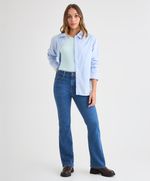 Ajuste y Tamaño Tus camisetas y blusas se verán perfectas con estos jeans. Ajustado en Cadera y Muslos. De Mezclilla. Cintura Alta. Pierna Acampanada. Cierre en Bragueta.