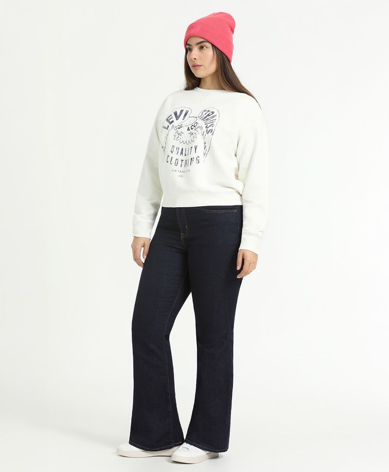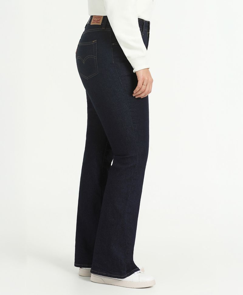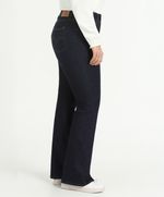 Ajuste y Tamaño entallado en la parte superior y desde la rodilla Pierna acampanada. Tiro alto, encima del ombligo. Estilo femenino, elegante y con un toque vintage. Lavado oscuro.