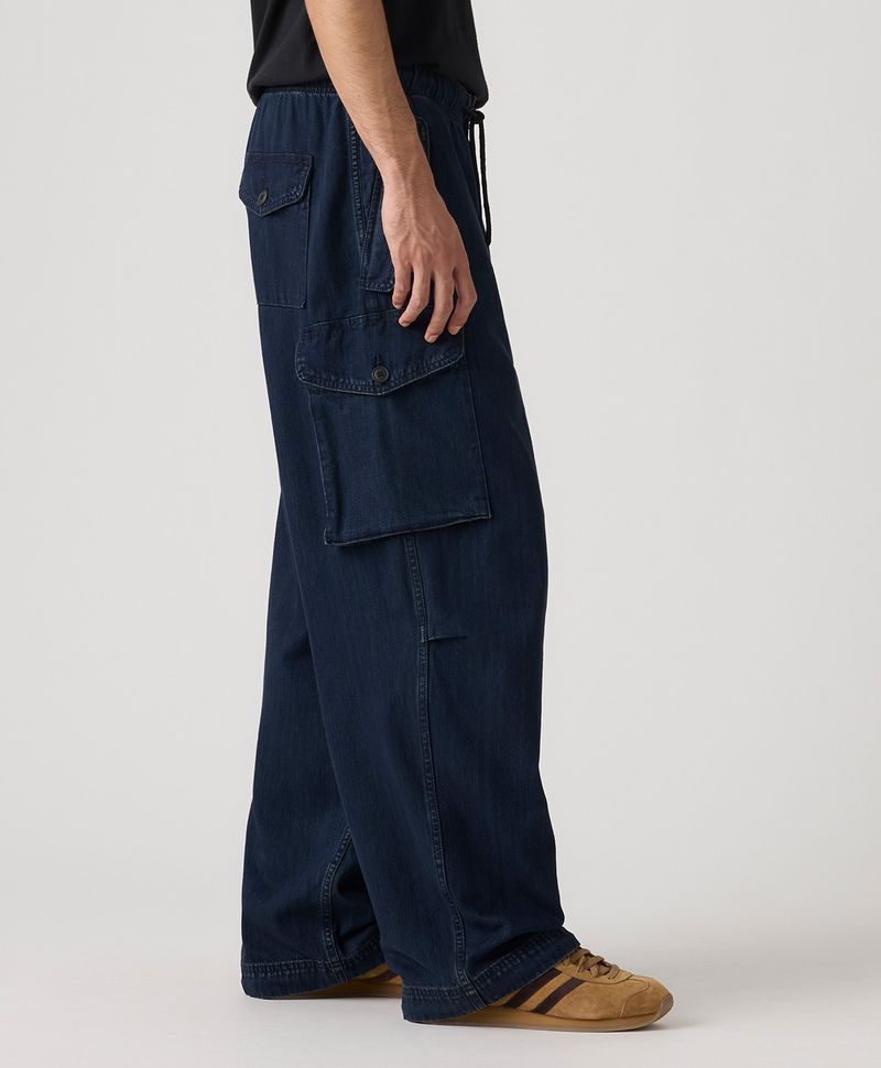 Ajuste y Tamaño Combínalos con tus chaquetas y buzos. Corte regular. Cintura media. Con jareta. Con bolsillos tipo cargo. Lavado oscuro. Algodón reciclado. Relajado en cadera y muslos. De mezclilla. Pierna Recta.