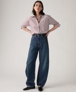 Ajuste y Tamaño Holgado en caderas y muslos, con forma ovalada al final. Pierna curva tipo "barrel": más ancha en el centro, más ajustada en el tobillo. Tiro medio, justo sobre la cadera. Estilo vanguardista, moderno, de alta moda. Lavado medio.