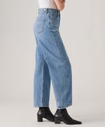 Ajuste y Tamaño Holgado en caderas y muslos, con forma ovalada al final. Pierna curva tipo "barrel": más ancha en el centro, más ajustada en el tobillo. Tiro medio, justo sobre la cadera. Estilo vanguardista, moderno, de alta moda. Lavado medio.