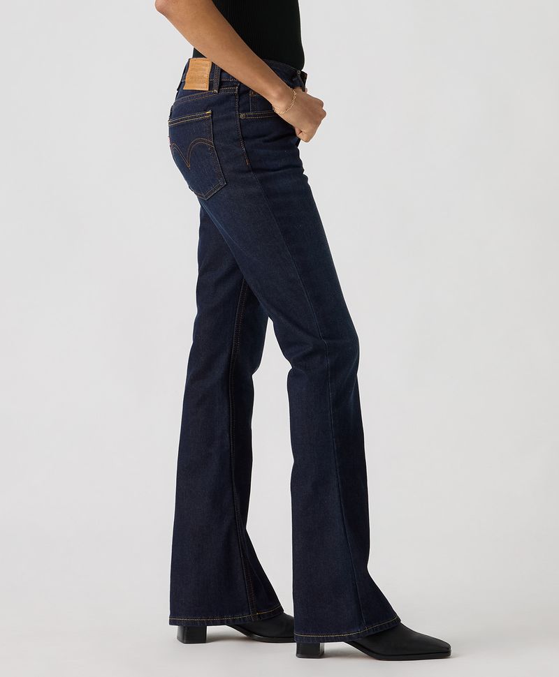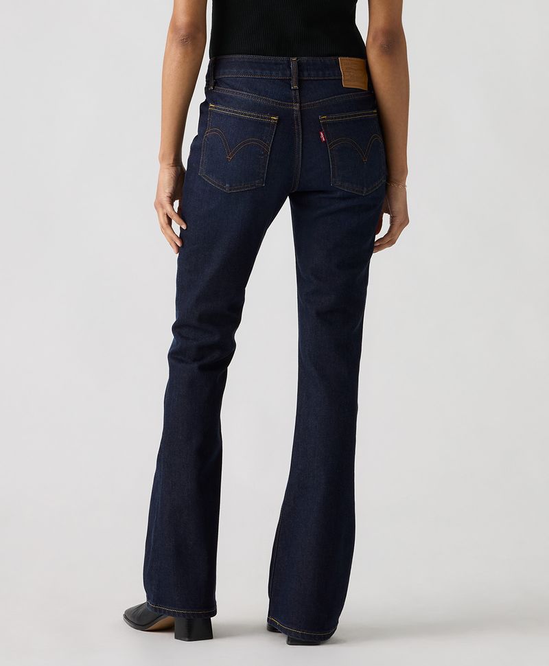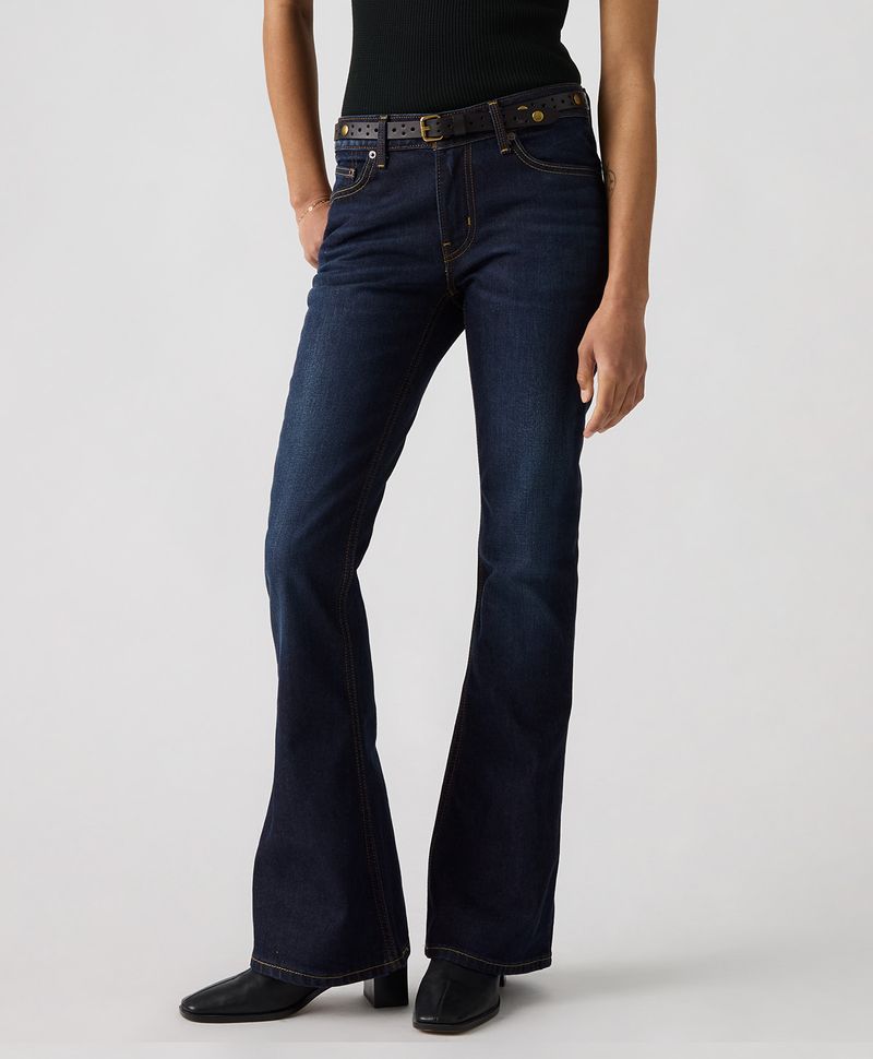 Ajuste y Tamaño Ajustado en cadera y amplio en muslos. De mezclilla. Lavado oscuro. Cintura baja. Pierna tipo slim con corte tipo bota. Facilidad para reciclar y reusar. Denim. Cierre en bragueta.