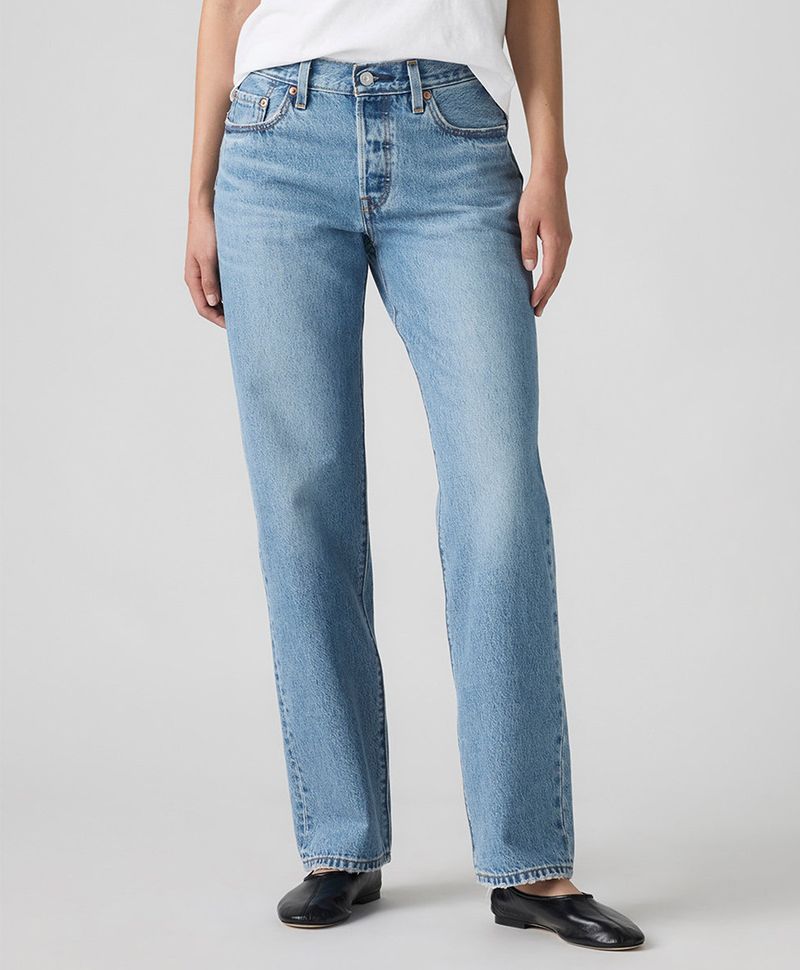 Estos jeans son la base para crear atuendos atemporales o directamente modernos, sólo necesitan el toque único de tu personalidad. Su corte es regular con cintura media y pierna recta. Combínalos con un top ajustado, un blazer oversize o una camiseta gráfica.