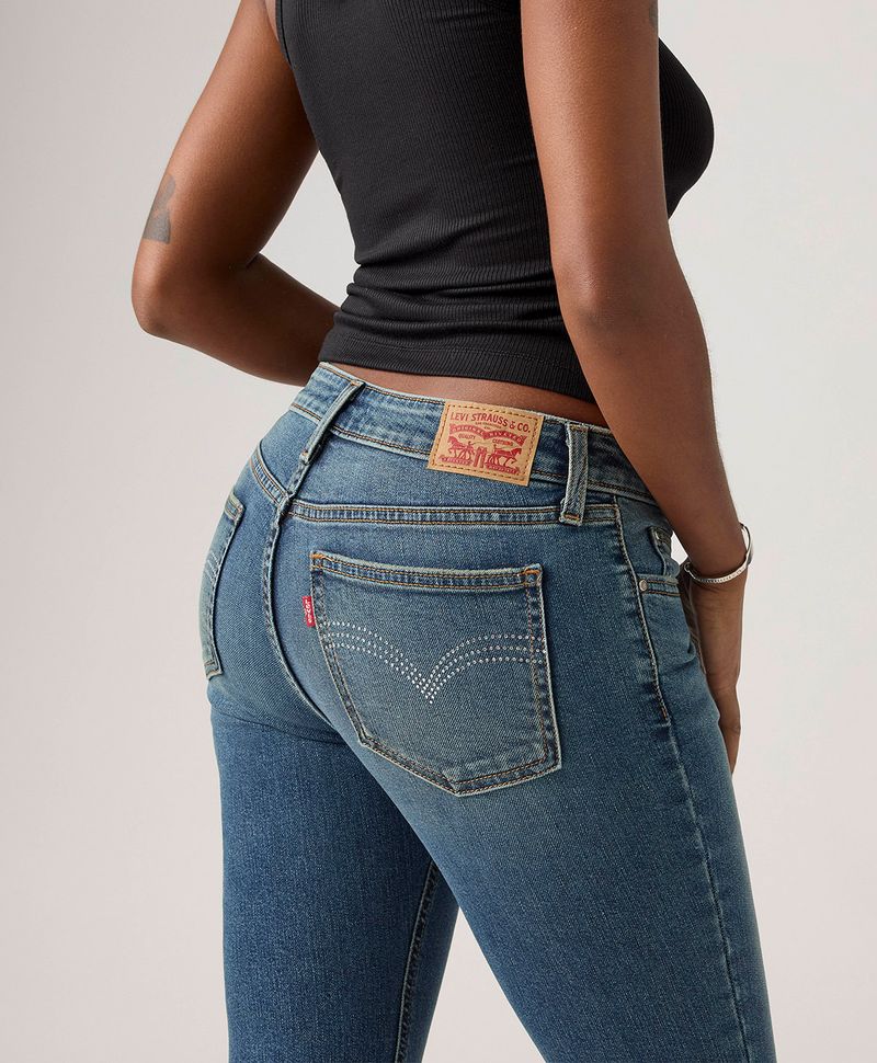 Ajuste y Tamaño Entallado en cadera y muslo. Pierna ligeramente amplia desde la rodilla. Tiro bajo, debajo del ombligo. Estilo cásico, versátil, con un toque vintage o western según el look. Lavado medio.