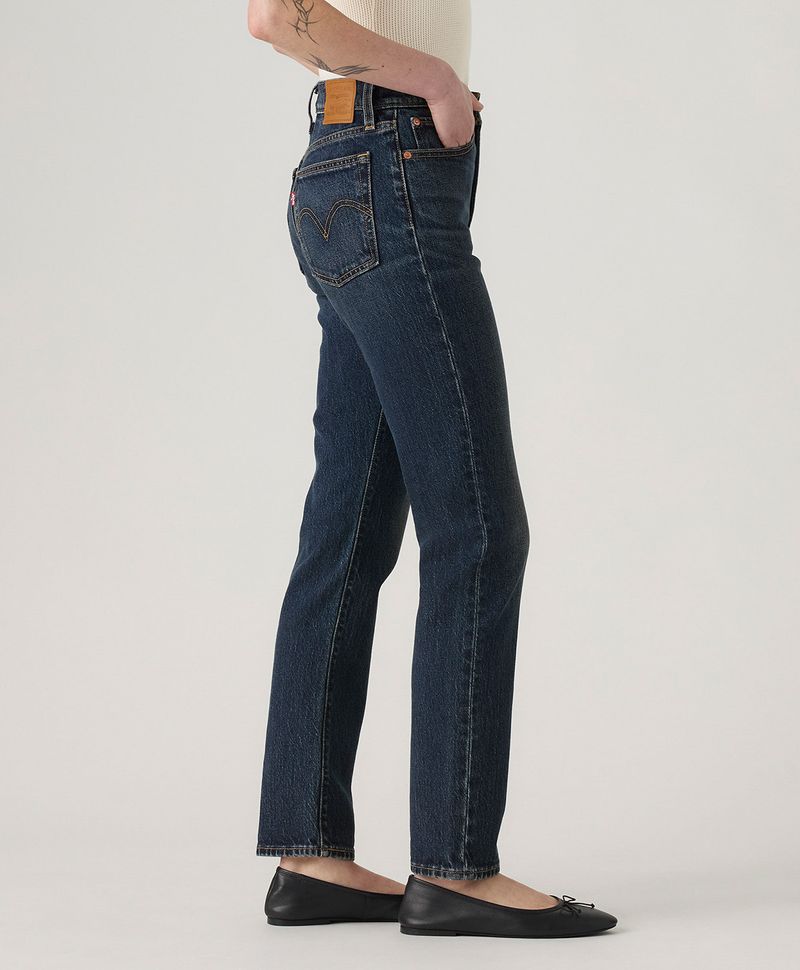 Ajuste y Tamaño Ajustado en cadera y muslos. Tiro alto. Pierna recta, no ajustada. Estilo pulido, versátil, moderno. Tiene ajuste en cintura, cadera y glúteo. Lavado oscuro.